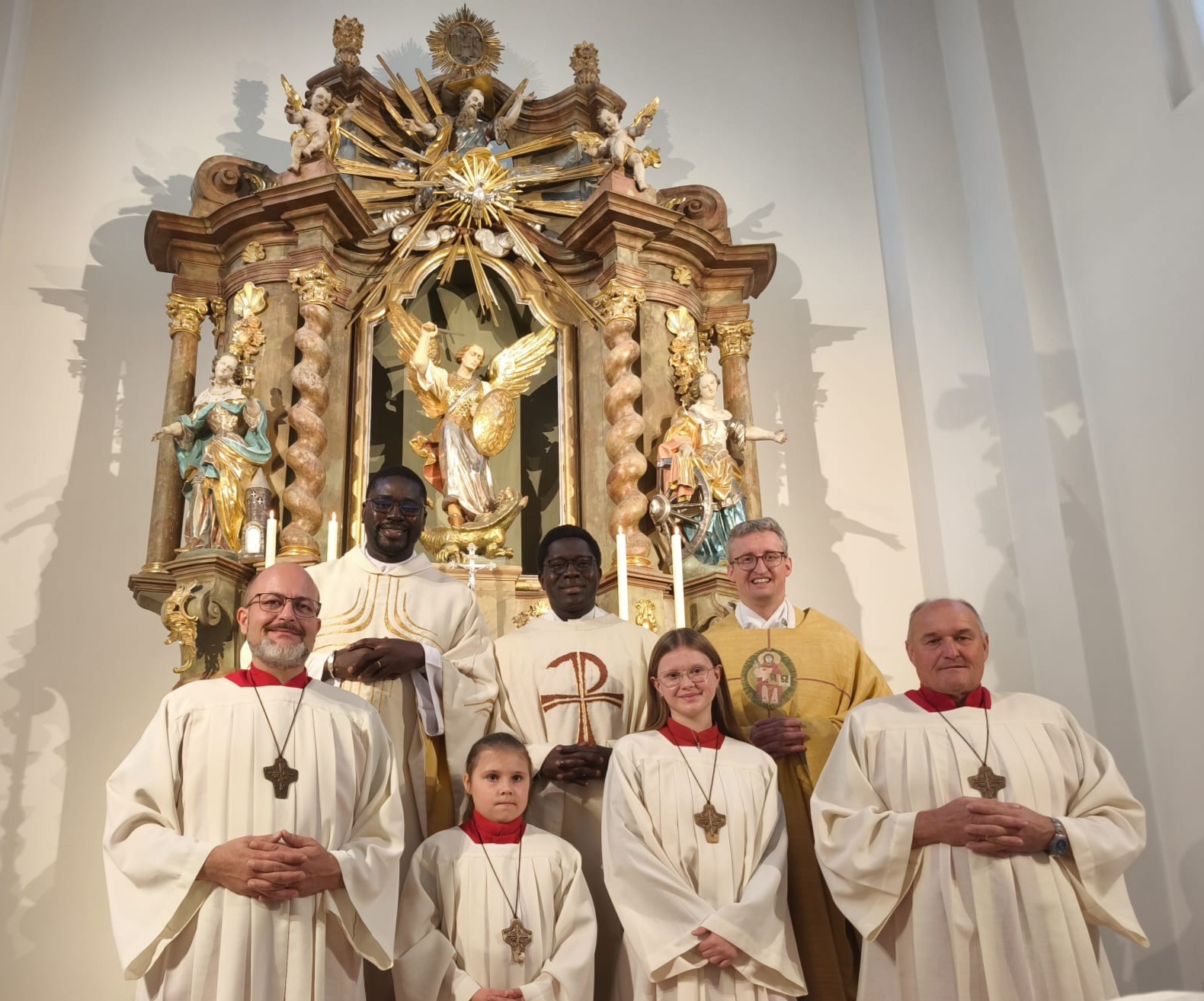Das Patrozinium in Eitlbrunn wurde heuer sehr feierlich begangen. Den Festgottesdienst feierten fast hundert Gläubige mit Pfarrer Josef Hausner, Pfarrvikar Michel Coumba Cor Sene und seinem senegalesischen Mitbruder Louis Paul Ndiaye. Sie wurden von den Ministrantinnen Theresia u. Josefine und den Ministranten Ernst u. Stefan unterstützt. Dr. Josef Meiler verlieh dem Festgottesdienst durch sein Orgelspiel eine besondere Würde. In der Predigt sprach Pfarrer Josef über die Bedeutung der Namen Michael, Gabriel und Raphael und ihre Relevanz für die Menschen von heute.